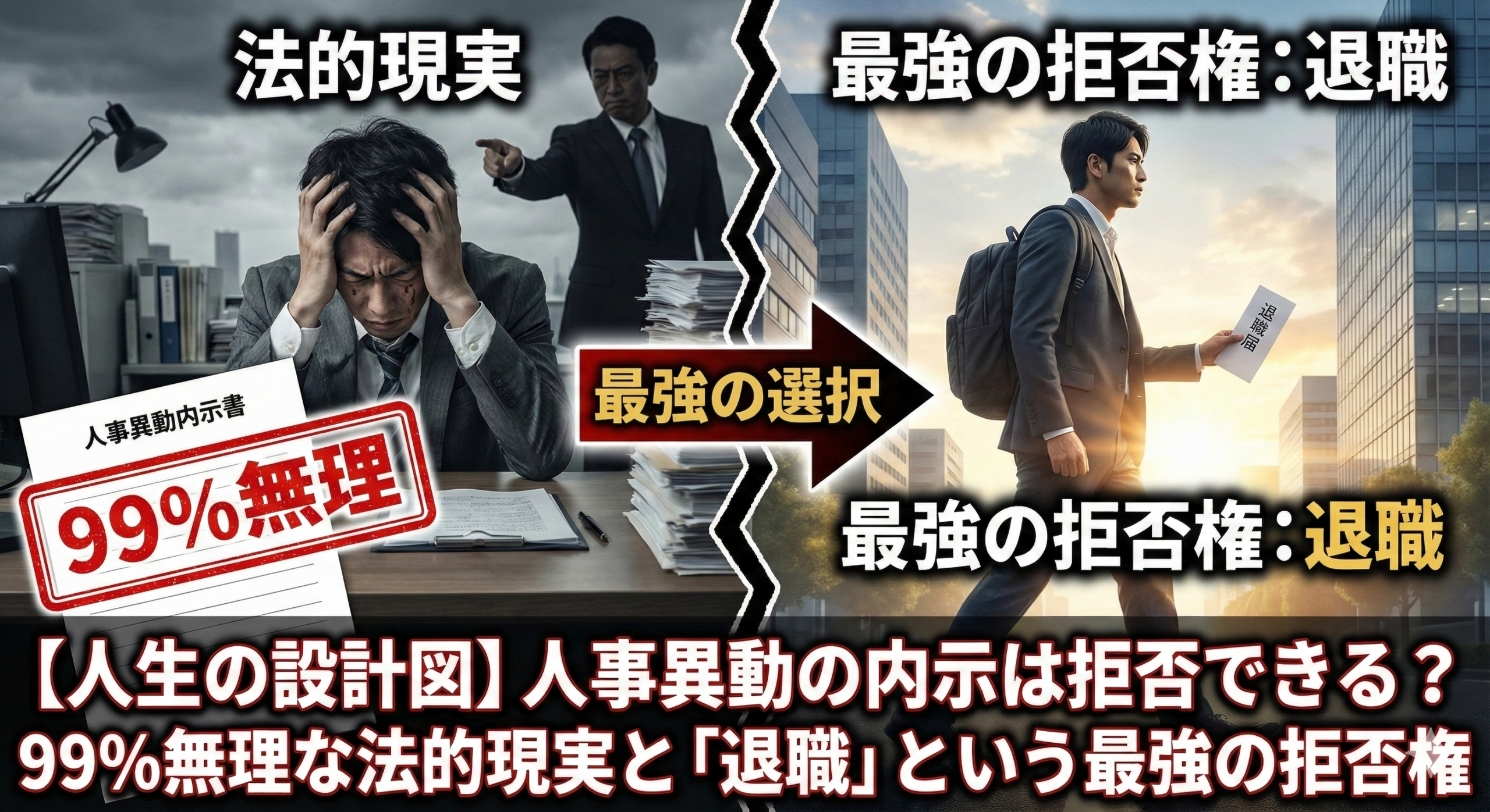 人事異動の「内示」は、ある日突然、あなたの人生の設計図を強制的に書き換える暴力的な命令です。生活環境、家族、キャリアプラン…全てを無視した会社都合の命令に、怒りや絶望を感じていることでしょう。